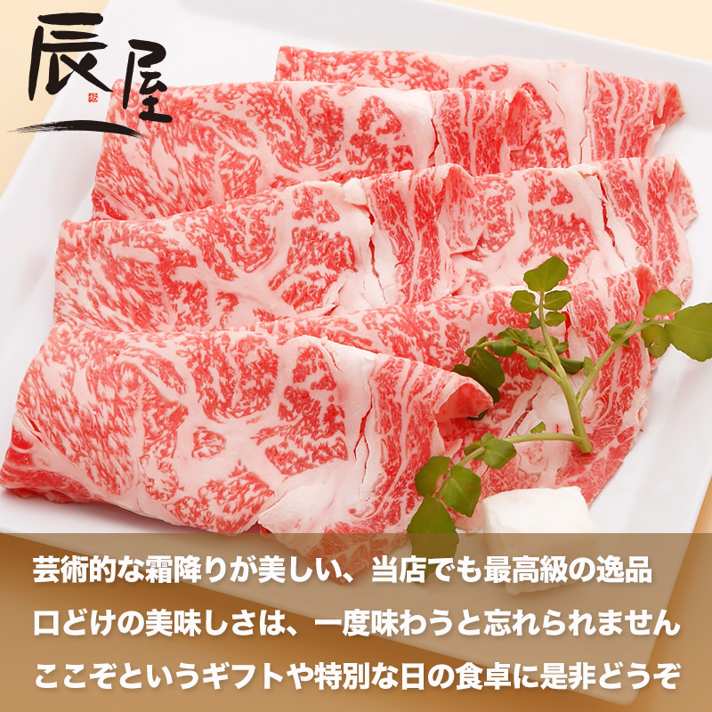 芸術とも言える霜降りが美しい逸品。 辰屋のすき焼き肉の中で最も柔らかく、舌の上でとろける程。 「口どけの美味しさ」は一度味わうと忘れられません。