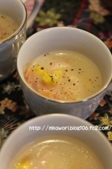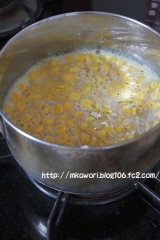 ★コーンポタージュ 材料と作り方 水 150ml 牛乳 150ml ■ブイヨン・・・・・1包 ■コーンパウダー 大さじ3 ■じゃがいもパウダー小さじ2 ■乾燥たまねぎ 2g ■乾燥コーン 8g 無塩バター 4g(小さじ1) 粉チーズ 2g 1食当り:286kcal (■がスープパレットです) | バターと粉チーズ以外の材料をすべて鍋に入れ、火にかけながら混ぜます。だまにならないようによく混ぜてくださいね。沸騰したら、弱火で2~3分煮てください。スープジャーに入れる場合は、沸騰したらすぐ火をとめて入れてOK。仕上げにバターと粉チーズを入れます。(バターや粉チーズはお好みで。入れなくてもおいしいです) |