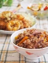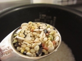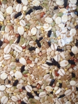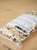完全国内産の(1)押し麦 (2)はだか麦 (3)青肌玄米 (4)もち玄米 (5)黒米 (6)発芽玄米 (7)青大豆 (8)赤米 (9)はと麦 (10)もちあわ (11)もちきび (12)もち麦 (13)アマランサス (14)たかきび (15)ひえ (16)緑米の全16穀を絶妙なバランスで配合した雑穀米です。