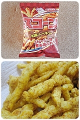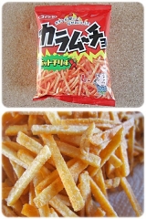 つまみやすくて食べやすい、スティックタイプです。チリ(とうがらし)など数種の香辛料をブレンドしたチリパウダーを使った辛さがおいしいポテトスナックです。