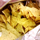 アボカド風味のオイルをかけたトルティアチップスに
