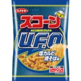 フレンテ(湖池屋)のスコーン 日清焼そばU.F.O.濃厚ソース焼そば味と 塩カルビ焼そば味が届きました 日清食品の日清焼そばU.F.O.とのコラボ商品 それぞれ3袋ずついただきました 濃厚ソース焼そば味は、やみつき濃厚ソース 日清焼そばU.F.O.のおいしさをリアルに再現… 2013/06/16