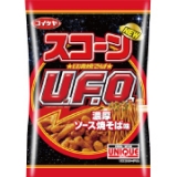 『日清焼そばU.F.O.ソース味』の特徴であるロースト感あふれる香り立ちはそのままに、香ばしい豚肉の旨みを加え、さらにおいしくなりました。濃厚なソースの旨みを堪能できるソース焼そば味のスコーンです。