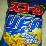 フレンテ(湖池屋)のスコーン 日清焼そばU.F.O.濃厚ソース焼そば味と 塩カルビ焼そば味が届きました 日清食品の日清焼そばU.F.O.とのコラボ商品 それぞれ3袋ずついただきました 濃厚ソース焼そば味は、やみつき濃厚ソース 日清焼そばU.F.O.のおいしさをリアルに再現… 2013/06/16