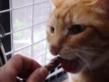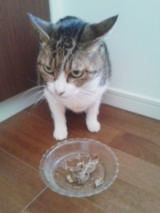 遅くなりましたが、以前いただいていたフリーズドライの馬刺し肉を猫ちゃん達にあげてみました! 上の猫ちゃん、12歳ぐらいのちびちゃんの足が映ってる興味あるみたい♪ でも、慣れないからかあんまり食べなかった… 次は下の猫ちゃん、3歳ぐらいのクレア!クレアも… 2013/11/10