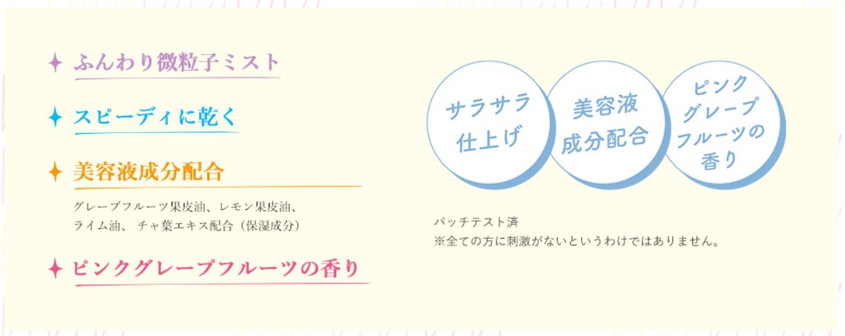 メイクの仕上げにシュッとするだけで、まるごとキープできちゃうミストです!