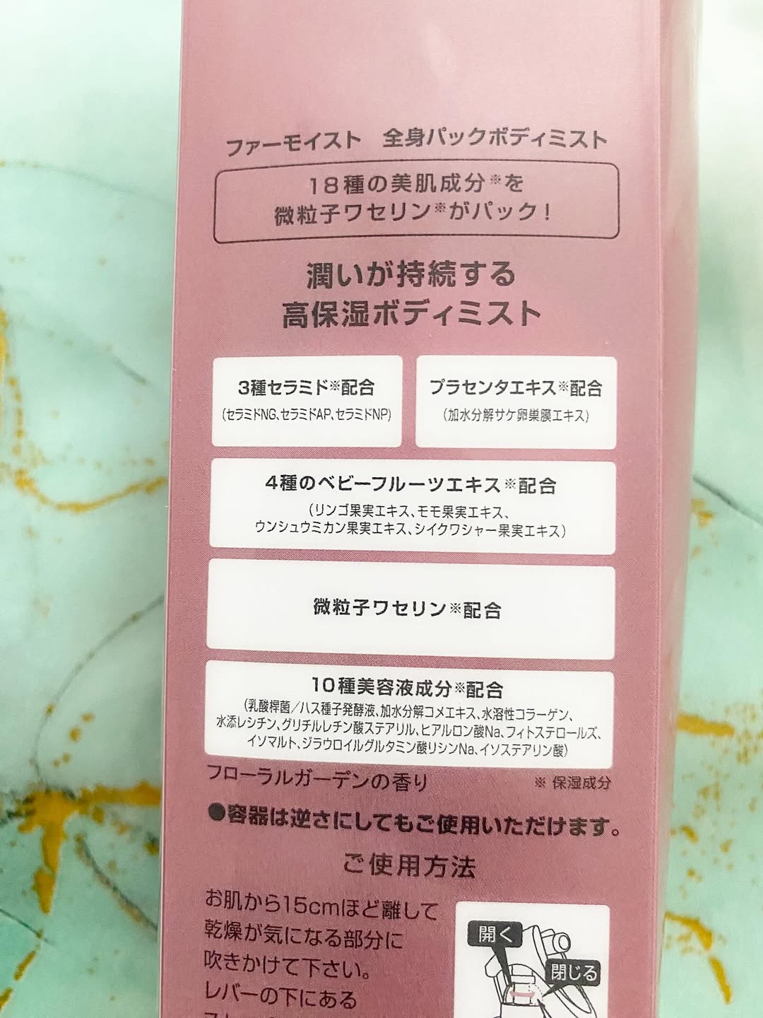 史上初!! ワセリンがボディーミストに✨✨ 🩵ファーモイスト 全身パックボディミスト🩵 美容液レベルの美肌成分がたっぷり✨ 🤍微粒子ワセリン 🤍3種のセラミド配合 🤍プラセンタエキス配合 🤍4種のベビーフルーツ配合 🤍10種の美容液成分配合 ワセリンをミストに出来るなんて✨✨冬は乾燥しまくりで、痒みも出てしまうので酷い時はワセリンを塗っているのですが、ベタついて洋服や色々なところに着くのが嫌でしょうがなかったんです🥹 これは救世主! 保湿しっかりしてくれるのに、ベタつかないなんて最高✨ さらにら逆さにしても使えるから背中やふくらはぎなど届きにくい所にもシュッと出来ちゃうのがうれしいポイント😊 #PR #株式会社黒龍堂 #ワセリン #時短ボディケア #高保湿ボディミスト #ファーモイスト全身パックボディミスト #monipla #kokuryudo_fan