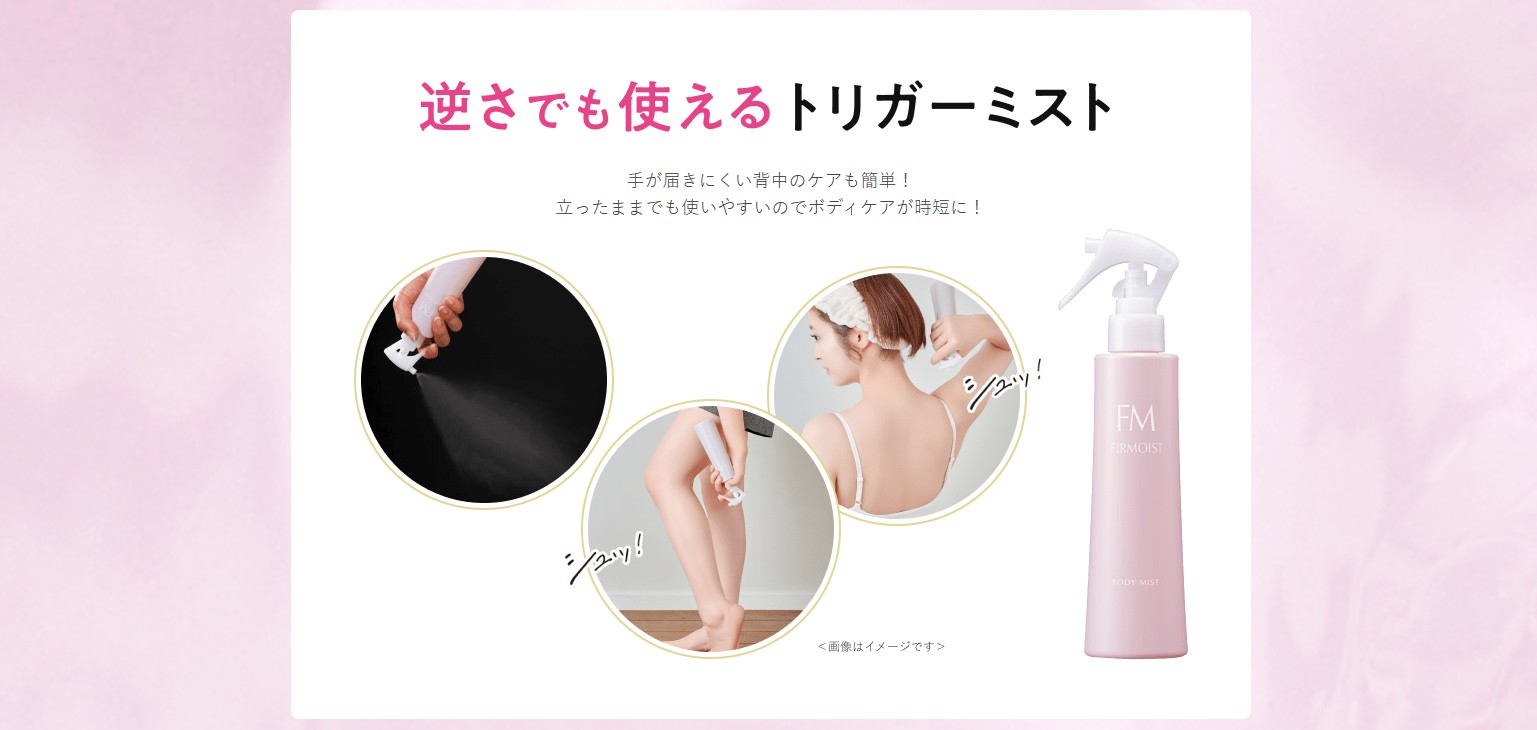 逆さでも使えるトリガーミストで背中や足の保湿ケアも簡単!※1保湿成分