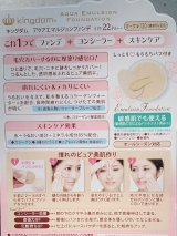 コスメ人気サイトの口コミで良くみかけるので、とーーーても気になっていた株式会社黒龍堂 キングダム アクアエマルジョンファンデまるで新感覚!のエマルジョンファンデーションですナチュラルベースメイクが簡単に出来て、かなり使えますょ水+うるおい成分+ミネラル成分を85%配合保湿成分のコラーゲン、3種のセ… 2015/01/13