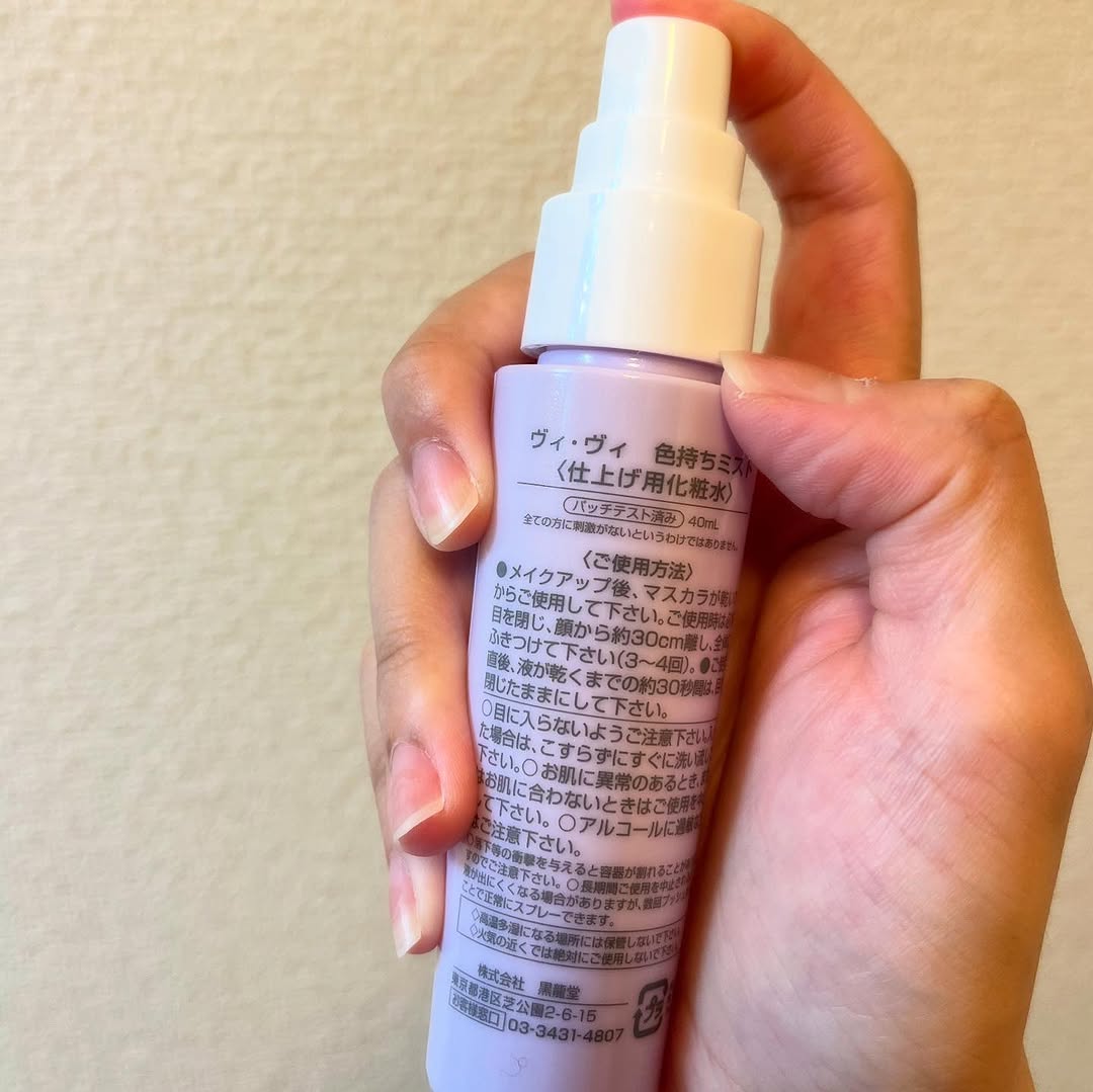 メイクの仕上げにこちらのミストを使うと、外出先でメイク直しをしなくても、1日中しっかり色持ちしてくれるので、朝の仕上がりがそのままキープされます。メイクが崩れにくいと感じます。