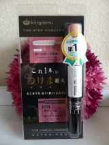 【キングダム ツーステップマスカラ】ですこれ、カールキープ下地とボリューム&ロングマスカラが1つになったダブルエンドタイプのマスカラなんですこれ1本で、つけまを超えるボリューム&長さがGETできるというスグレモノぴわびは、エクステもつけまもニガテだから、こういうのまってたんですさっそく使ってみ… 2014/03/19