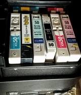 | プリンターが目詰まりする原因はインクを出しているヘッド部分にあるノズルのインクが乾いて固まってしまったり、細かなホコリが混入してくっついてしまったり様々な原因があります。 機種によってはカードリッジからインクをヘッドに送る途中のチューブ内部の一部が目詰まりを起こし、インクの通り道が狭くなるため、通りが悪くなり(人間でいう動脈硬化の状態)印刷のかすれなどの原因になります。又、使用インクが「純正・互換」問わず目詰まりは起こります。 |