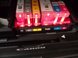 | プリンターが目詰まりする原因はインクを出しているヘッド部分にあるノズルのインクが乾いて固まってしまったり、細かなホコリが混入してくっついてしまったり様々な原因があります。 機種によってはカードリッジからインクをヘッドに送る途中のチューブ内部の一部が目詰まりを起こし、インクの通り道が狭くなるため、通りが悪くなり(人間でいう動脈硬化の状態)印刷のかすれなどの原因になります。又、使用インクが「純正・互換」問わず目詰まりは起こります。 |