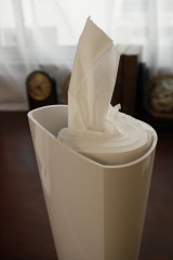 今回はこのおしゃれなティッシュケースを使用してみました ティッシュボックスって、買ったものをそのまま使うものだと思っていましたしかも横長はあたりまえだと ところがこのティッシュケースは、縦型 そこにとても惹かれました この商品のいいなあと思うところは、 ティッシュを取り出した後の紙… 2011/09/29