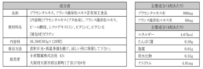 ■プラセンタパインの成分表
