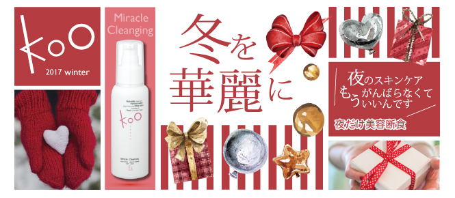 更に自社開発、専売のスキンケア製品 Koo シリーズをインターネットで販売を行っております。Koo ファストシリーズでは、新発想の素肌美を助ける『美容断食』を提唱しています。これは一定期間お肌に何も乗せない、いわば『お肌の断食』の状態を毎晩作ることにより、お肌を本来の排泄器官(人間の臓器のひとつ)としてしっかりと働かせることで、肌を健康な状態に着目することをコンセプトとし、各メディアでもとりあげられ評価を頂いております。