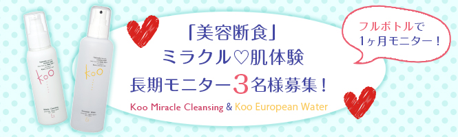 Koo美容断食はお肌のお悩みを解決して頂くためのアイテムとして、ぜひ取り入れて頂きたいと思い、開発いたしました今回は、フルボトルサイズで美容断食を実践していただく方を3名募集します!