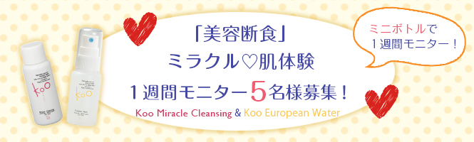 その話題の『美容断食』が簡単にできるよう開発されたのが、kooファストシリーズのミラクルクレンジングとヨーロピアンセラウォーターなのです☆