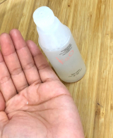 ①朝の洗顔の後、スキンローションを¥500玉程の量を手に取り、やさしくパッティングしながらお肌になじませます。しっとりめのテクスチャーはヒアルロン酸を多く含んでいるから。徐々に、 さらっとしながらもしっとりとした感覚がお肌を包みます。
