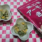 . #きゅうりとコーンのきなこわさびマヨ和え 薄切りにして塩揉みしたきゅうりと缶詰のコーンを、マヨネーズと同量の黒ごまアーモンドきなこに、お好みの量のわさびを加えて和えるだけ。 マヨネーズのまろやかさに、わさびの風味と、黒ごまアーモンドきなこの香ばしさがプラスされて美味しいですよ。 #きゅうりとコーンのサラダ #黒ごまアーモンドきなこ #からだきなこ #幸田商店 #黒ごま #アーモンド #きなこ #わさび #幸田商店のからだきなこファンサイト参加中 #monipla #クッキングラム #おうちごはん #簡単レシピ #おつまみ #お弁当 #副菜 #大豆イソフラボン #セサミン #ビタミンE 2017/09/20