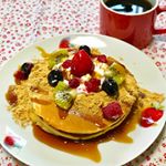 ふと、思い立ち…「きなこホットケーキ」を作ってみました! . ホットケーキミックスに、先日、いただた幸田商店さんの「もち麦ココナッツきなこ」を混ぜて焼いたホットケーキに 生クリームにフローズンベリーにキウイを散りばめて、 追い”きなこ”をトッピング。 そこに黒蜜をかけて、あっという間に出来上がり。 . もうすぐ12月ということで、クリスマスを意識してみましたが、 なんだか、ごちゃごちゃした感じになっちゃいましたが、ま、それはそれで。(笑) . 生地にココナッツパウダーが入っているので香ばしくて、もちもちしていて、とっても美味しかったです。(2枚目pic) また、いろいろと作ってみたくなっちゃいました~。 . . . #きなこホットケーキ #ホットケーキ #幸田商店 #からだきなこ #もち麦ココナッツきなこ #きなこ #きな粉 #スイーツ #手作りスイーツ #おうちスイーツ #手づくりスイーツ #健康食品 #ヘルシー #大豆イソフラボン #イソフラボン #中鎖脂肪酸 #からだバランス #モニプラ #monipla #幸田商店のからだきなこファンサイト参加中 #森永ホットケーキミックス #森永ホットケーキミックス60周年 #森永ホットケーキミックスでクリパ . . . 2017/11/16