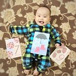 1~12月までの数字カードと、バースデー、ハーフバースデーのお祝いに使えるカード、出生時の記録を記入できるカードがセットになっていて、数字カードは裏返すと写真を貼ったりコメントを書けるスペースになっているのでアルバム代わりにも!