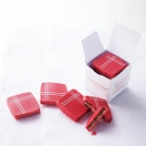 そして、 「青チョコおいしいなー。夏でも食べたーい!あのカリっとした食感とミルキーなジェラートが合わさったらおいしいだろうな~!」というプランナーの熱い思いからフェリシモオリジナルの青チョコジェラートが誕生しました。また、青チョコの兄妹分にあたる味わいも異なる「ムシュワール ダ ショレ」という名の“赤いチョコ”は、赤いハンカチがモチーフの品のある風味。フランスのショレという街で生まれたチョコです。青と赤、両社のオーナー同士が仲よしで、フランスではよく一緒にセット販売されているそうです。どちらもフランスからチョコをこのためだけに輸入し、日本のジェラート職人が手作業でチョコをカットして贅沢なジェラートに仕上げています。
