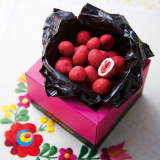 フリーズドライのラズベリーをホワイトチョコとラズベリーパウダーでコーティング。甘さ控えめで、まるごとラズベリーの風味がそのまま楽しめる、素材のよさが際立つ逸品です。