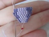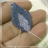 ビーズステッチと呼ばれる、細い針とコードを使ってビーズを並べるように敷きつめる方法で、花びらを1枚ずつ形作っていきます。