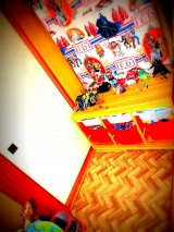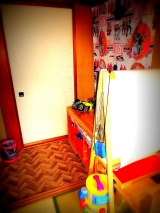 居てもたっても居れない性分で、ブログをUP後すぐに模様替え 昨日UPした→★ 酷い有様の廊下... せっせと運んで... こんな感じに仕上がりました フロアシートの下には、家にあった絨毯の切れ端?を敷き詰めたので暖かです 狭いけど、気に入ったようで早速遊んでいました… 2013/10/18