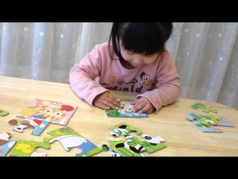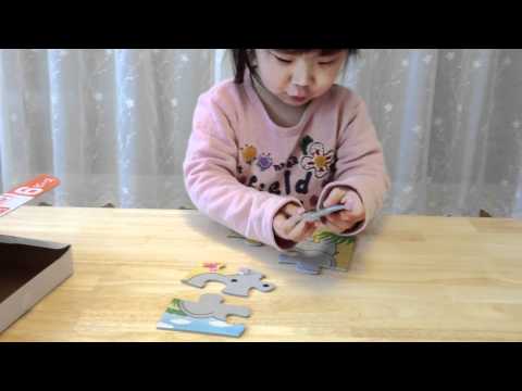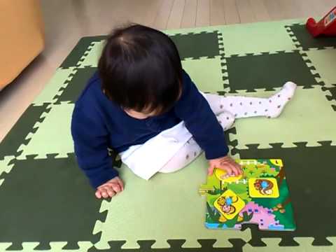 1歳6ヶ月の娘がくもんのジクソーパズルSTEP0で遊んでいる様子