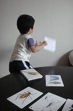 8月にはいり、毎日ほんとに暑い公園へ連れて行ってあげたいんだけど、りゅがも暑くて外に出たくない様子(笑)今日は、“くもんの自然図鑑カード”で遊んだよ 最近、“あり“や“むし”に興味深々のりゅがくんにピッタリ 知っている“むし”を探してママに見せてくれたよ!!! リアルに描かれているカードの裏… 2011/08/01