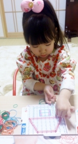 モニプラさんより、くもん出版さんの「わごむパターンボード」という知育玩具が届きました!こちら、あのどこにでもある”輪ゴム”を利用した知育トイなんです!こんなものまで玩具にするなんて、くもんさんの発想力に驚きでした入っているものは、ボード:19ピン 1枚/81ピン 1枚わごむ:6色9種類 各10本カー… 2013/01/13