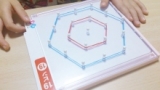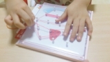 カラフルなわごむをピンにかけ、様々なパターンつくることができます。楽しく遊んで形の感覚が身につきます。60パターンの作例つき。