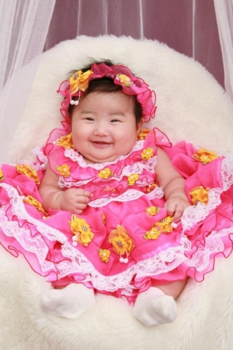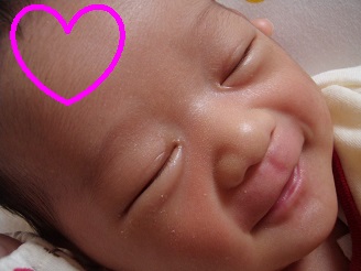 朝、寝起きが一番良いです! 天井見ながら1人でニコニコしていて、いつ起きたのかわからないぐらい! お菓子を袋から出す時からニコニコし始めます! だっこをするのに脇を持って持ち上げようとすると、とびっきりの笑顔になります! 2013/01/24