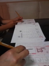 5歳年中さんの息子君の最近の日課 じゃん 「くもんの小学ドリル書写(しょしゃ)シリーズ」 『1年生のひらがなカタカナのかきかた』 外では自転車サッカー おうちではパズル を お勉強もプラス 2冊あるのですが 1冊は私用 一人でやらせるよ… 2013/06/16
