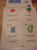 身近なことばのなかで、アルファベットの小文字を練習します。