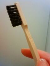 ②靴専科オリジナル竹ブラシ…クリーム塗布時や、細かい箇所のホコリ取り、汚れ落としに最適。先端が斜めになっているので、靴底についた粘着性の汚れ(ガム等)を剥がす際にも役立ちます。