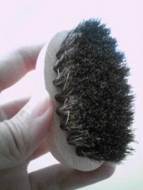 オリジナル小判ブラシ:靴専科オリジナル刻印入りのホース(馬毛)ブラシです。長さ7cmほどの小型サイズで、持ち歩きにとっても便利!