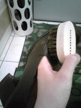 ■使用方法:ウエス(着なくなったTシャツの切れ端でOK!)に少量とってまんべんなくのばします。その後は小判ブラシでクリームをなじませるように磨くだけ!