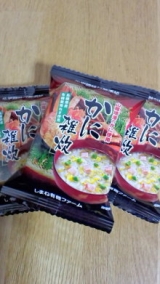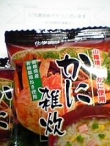 かに雑炊、食べました 先日、桜江町桑茶生産組合さんから届いた「かに雑炊」を食べてみました フリーズドライなので、袋から出すと、こんなふうです 「お湯を注ぐだけで完成」なのでとっても楽ですかにの風味がして、とっても美味しかったです … 2011/03/10