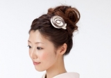 繊細なコットン糸で作り出されたオリジナルの髪飾りです。コットンの優しい色合い、柔らかい素材感が、コーディネートをナチュラルな雰囲気に。小さなパールの輝きもポイントです。