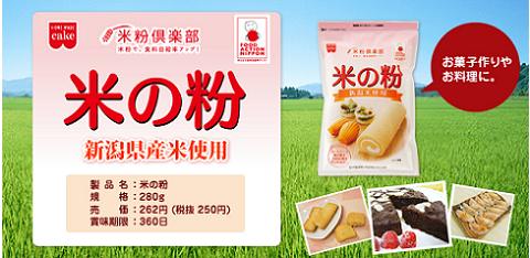新潟県産の米を使用した米粉。超微粒の米粉はダマになりにくく、お菓子やお料理などに幅広く使えます。