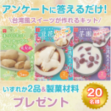 今回はアンケートに答えるだけで共立食品の新商品「台湾風スイーツ」が作れるキット(いずれか2品)&製菓材料をプレゼント致します❣