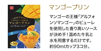 手軽に「本格マンゴープリン」が作れます。ソースにはマンゴーの王様「アルフォンソマンゴー」のピューレを使用し、香り高くマンゴの豊かな風味に仕上げました。