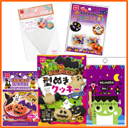 ハロウィンモチーフのオリジナル抜き型(かぼちゃ・こうもり・おばけ)がついた型ぬきクッキーセット。