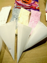 アイシングに便利な絞り出し三角紙です。細かい文字やデザインも描けます。