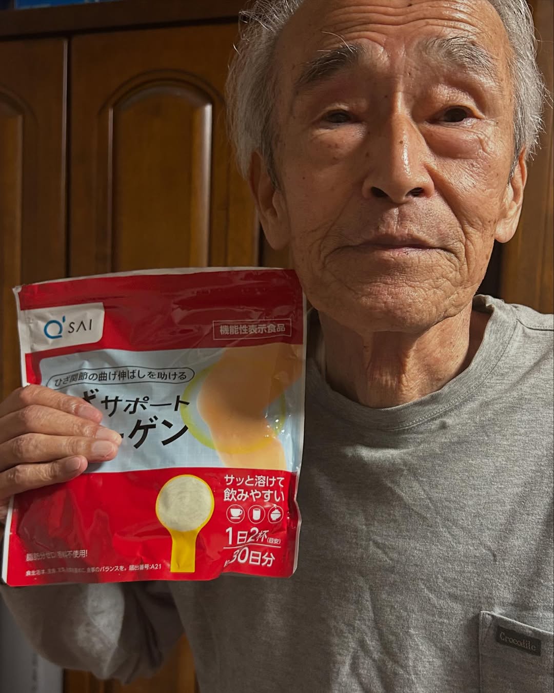 今まで膝サポートのサプリメントは祖父が飲んだことあると言っておりましたが、なかなか薬を普段飲んでいるため+サプリメントがめんどくさくて薬が多いから飲みたくないと言っておりました。そこで今回祖父にも試してもらいました。祖父はお味噌汁に入れて飲んでおりましたが、溶けも良く、味もしないし、サプリみたいに余分なものを飲んでいる気がしないと言っておりました。