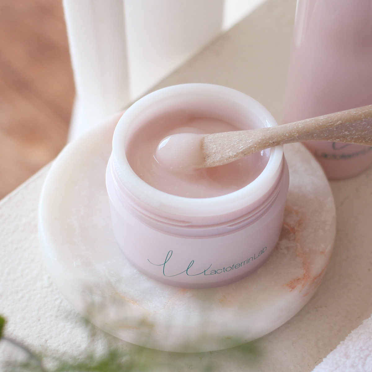 ラクトフェリンは羊水や初乳に含まれ、赤ちゃんを外の刺激から守る成分。ジェルのほのかなピンク色は、純度の高いラクトフェリンの機能が生きている証です。