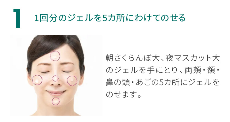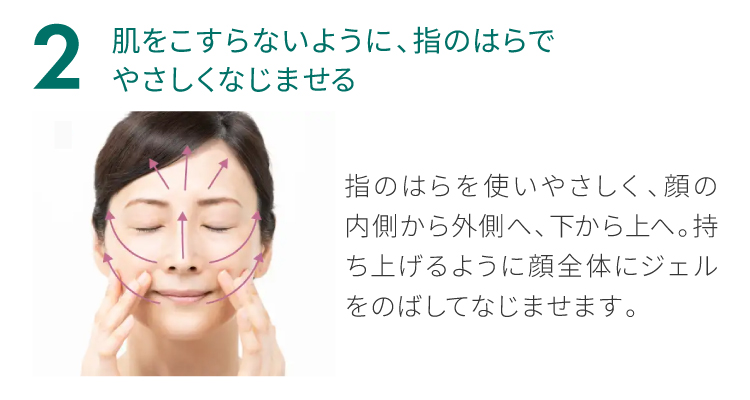 ジェルの前に、このひと手間をプラスすることで、ラクトフェリンをはじめとした美容成分がより肌になじみやすく、うるおいがすみずみまでいきわたります。
